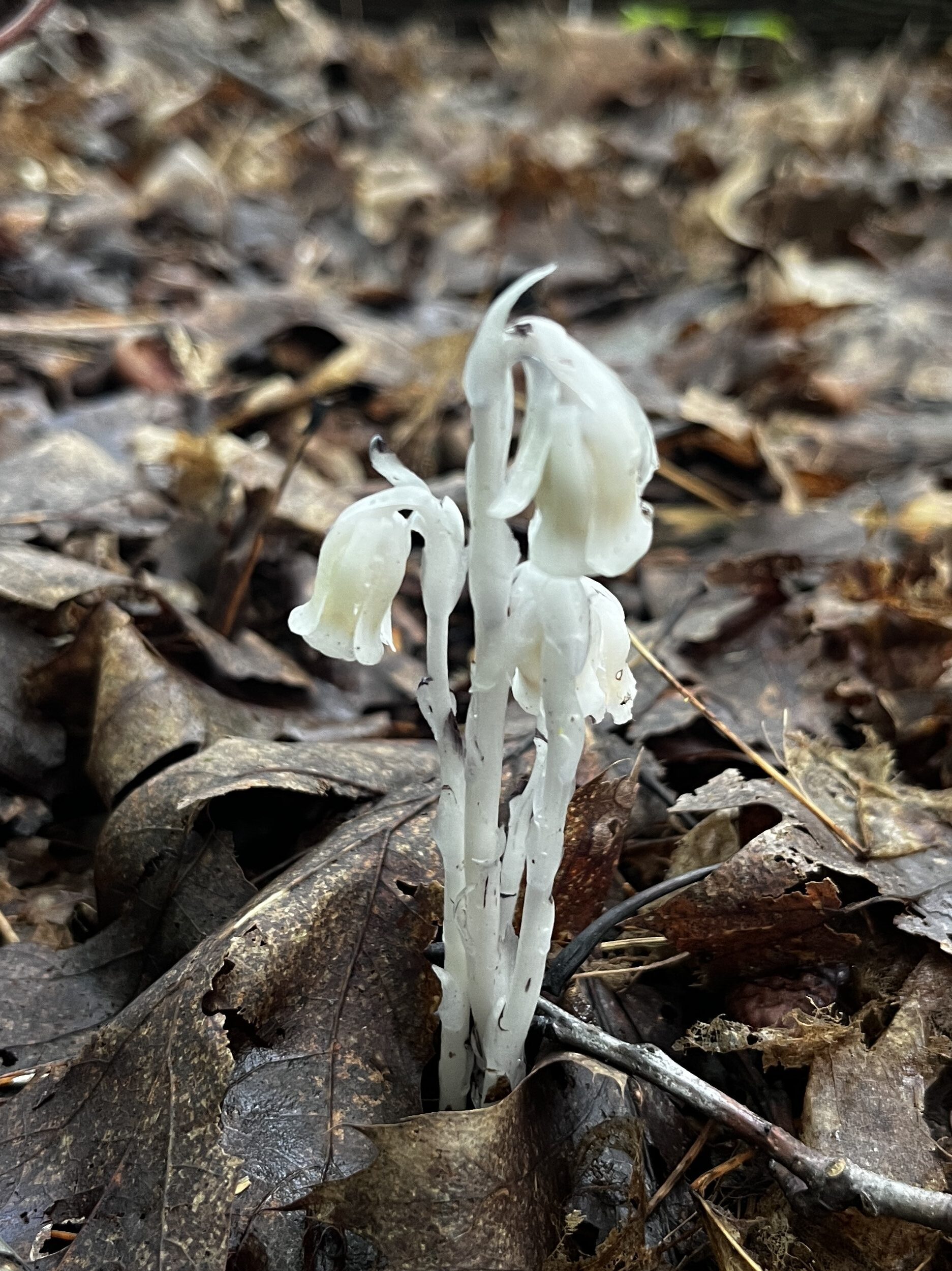 Ghost pipes popping through the damp layer off duff on my way to the gap.