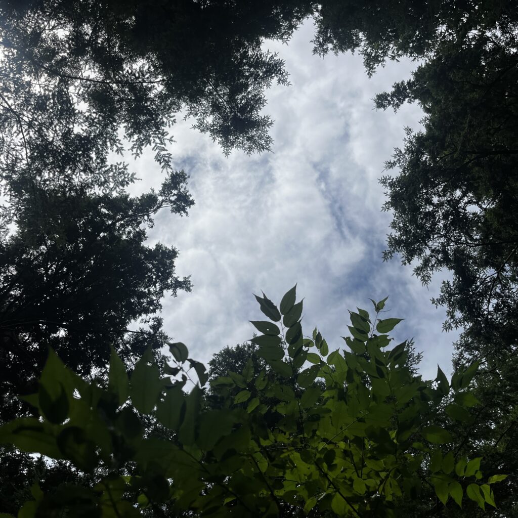 I started my visit today listening to the birds because I noticed it was the first time I really heard any in all of my visits. I pulled out the Merlin bird app and started a recording: black-throated green warbler, red-eyed vireo, black-capped chickadee, cedar waxwing, and eastern wood-pewee. I’m pretty certain I was in the presence of a black-throated green warbler, a black-capped chickadee and a red-eyed vireo. But the rest I was unsure of. I didn’t think I was in the right ecosystem for cedar waxwings and I didn’t hear the infamous “PEE-WEEEE” of the eastern wood-pewee, although it’s entirely possible the Cornell Lab of Ornithology knows better than me. Today I also saw some ghost pipes on my walk to the gap and also evidence of somebody dining on a mushroom. I forgot to take a picture of of the tan, flat-capped mushrooms growing next to this spot, and frankly I wasn’t very interested in them as identifying mushrooms isn’t why I came to the gap today.