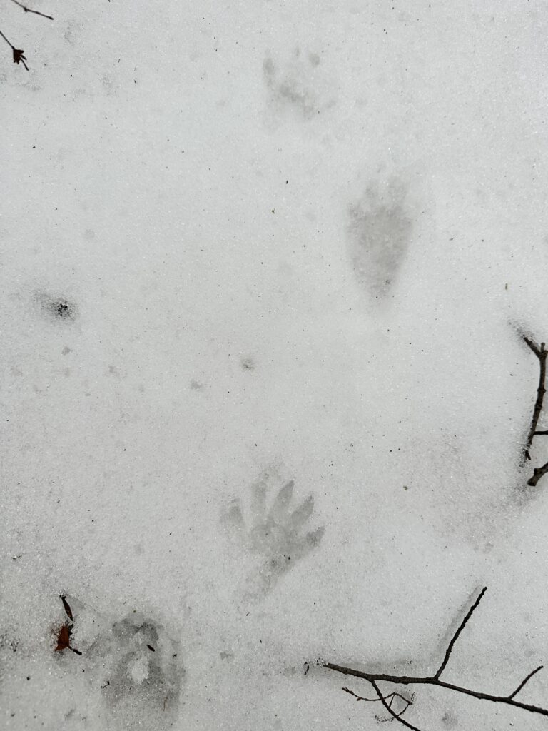 While walking around Burlington trying to find signs of animals I was trying to find evidence of animals you don’t often see. Not the usual squirrel track or a bird. I did find two tracks that I took a picture of.