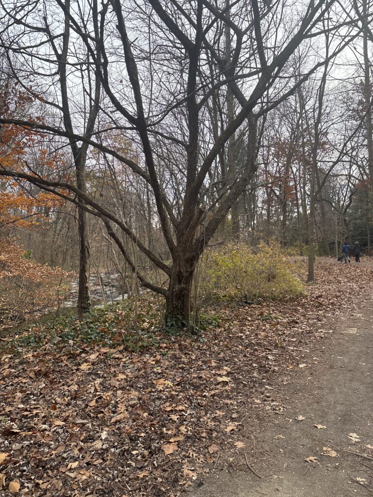 The most apparent sound is the stream and the sounds of the miniature waterfalls that man places throughout the stream, and behind that sound, perhaps not so pleasantly, there are the sounds of construction and the whirring of machinery, reminding me I am still very much in a city. The second thing I noticed is the people walking by, which reminded me that people use this trail daily, whether it be to get to school, walk their dog, or just escape the city.