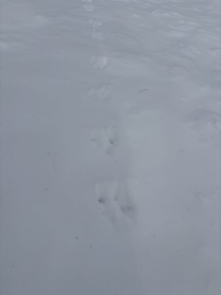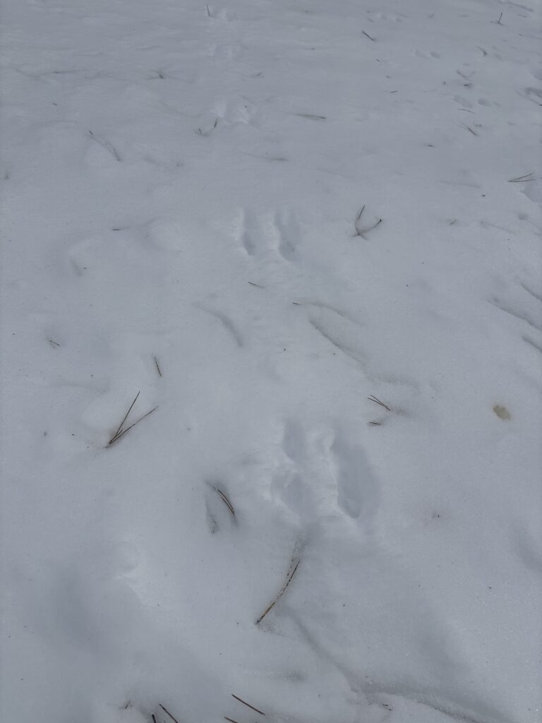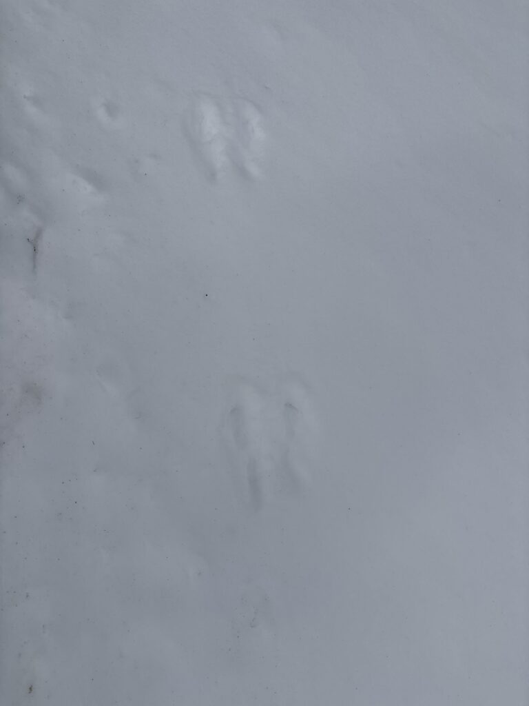 When me and my friend saw these tracks we were deciding between whether it was a bunny or a hare, or something like a squirrel. Eventually, after looking at the handbook and sizes of the print, and the facts the prints were all coming to and from trees, we decided that they are most likely Eastern Gray Squirrel tracks.