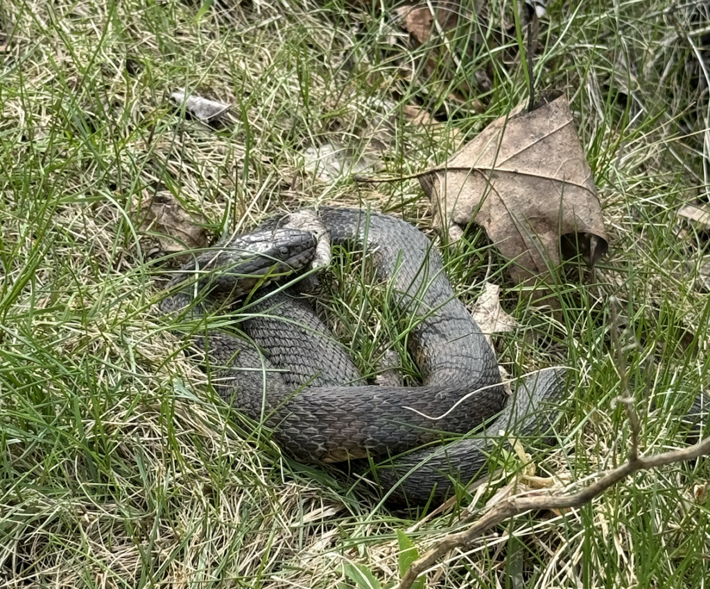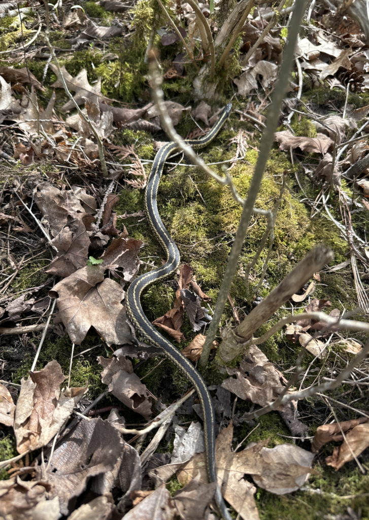 While I was on my walk I saw the first ever reptile that I’ve seen around the pond! This little garter snake was sunbathing directly in the path. I tried to get up closer to him to take a photo but he slithered into the weeds and disappeared. Luckily, I managed to snag this quick pic.