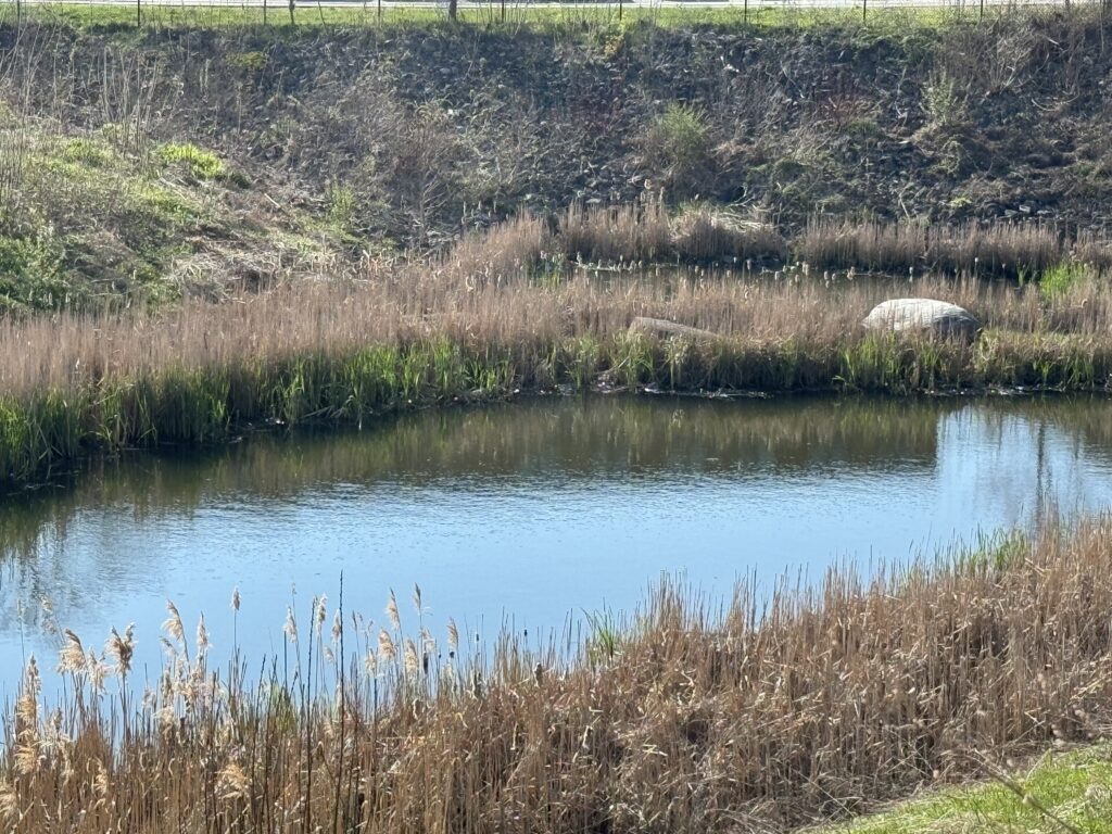 Today, as the plants around the stormwater drainage pond finally begin to emerge, and life returns to the area, I decided to take a look at the pond from the opposite angle that I normally look at it.