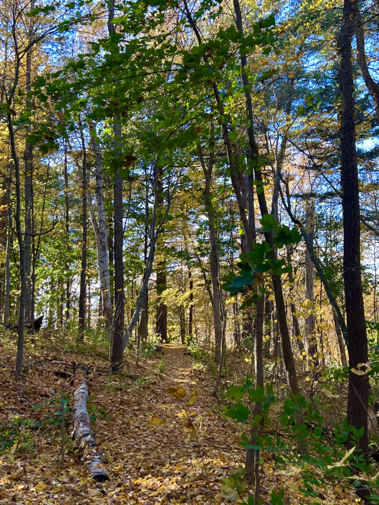 Similar to Trin Woods, this place also has many Red and White oaks. It however has no Eastern White Pines or Hemlocks, and instead has lots of American Beech. There are very few ferns or mushrooms that are visible when walking along the path, and there are few felled logs as these trails are mainly used for mountain biking, and that would be quite dangerous.