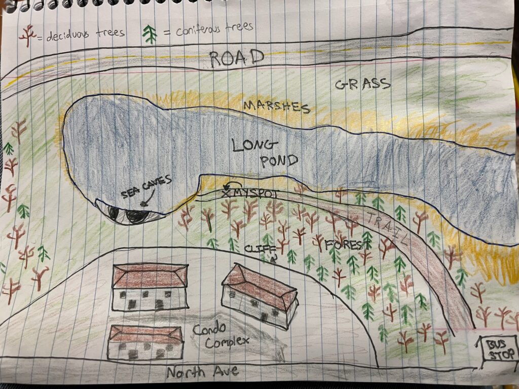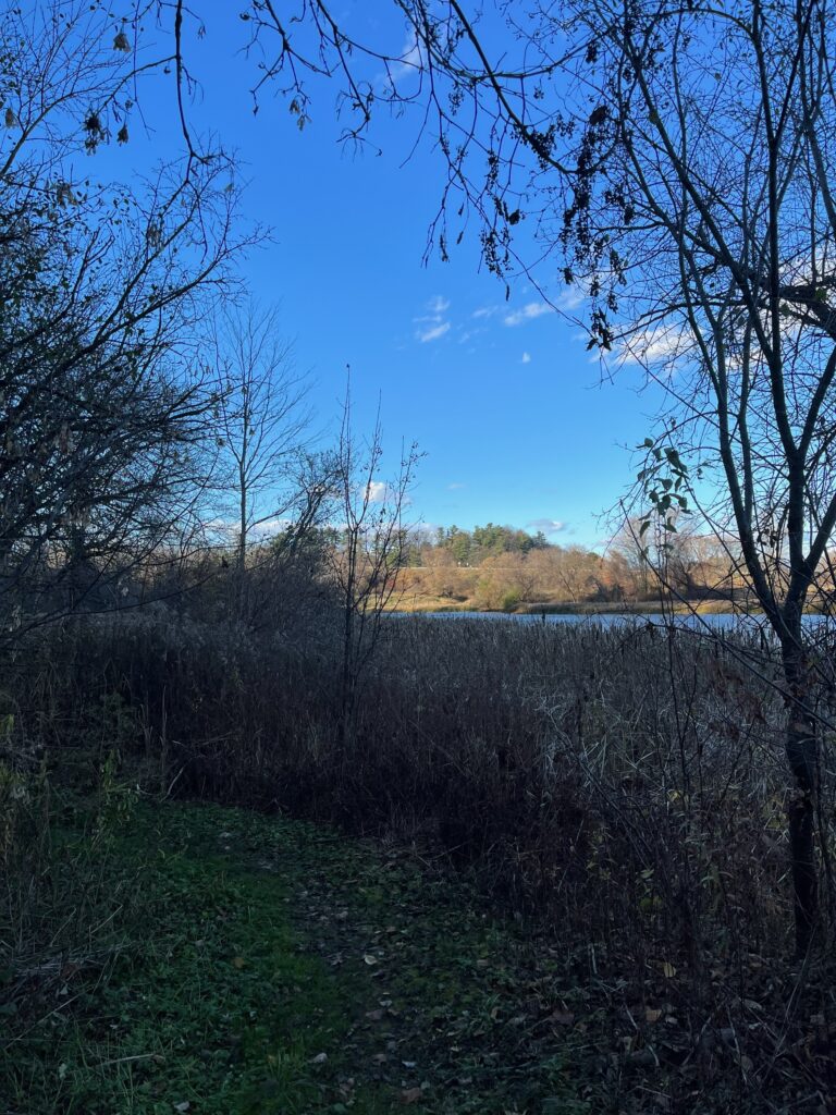 Sitting in one spot for 15 minutes at Arthur Park connected me to the senses around me. I could smell the decomposing leaves in the air and hear the cars passing by on the nearby road and the geese flying above. At one point in my solitude I was fortunate to observe a flock of geese swooping down and landing in the pond as shown in the following video. I also observed that, although it was a very windy day, there was minimal wind reaching my spot. This is likely due to the area being just off of a small cliff that blocks the wind coming from the lake.