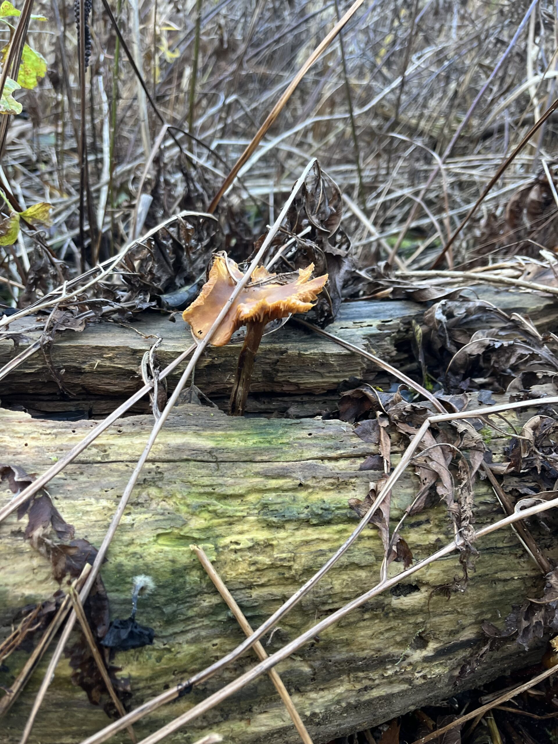 Although it was only my second time at Arthur Park, the vegetation in the area was significantly changed from when I saw it last. The leaves on all of the maple and birch trees have fallen to the ground as is expected in mid-autumn. Only the leaves of the common buckthorn are persistent in staying on their branches. There are also still some bright berries growing in bushes in the area. In the marsh, the cattails are shedding seed fluff to let seeds fly away in the windy autumn season. Also, there are more fungi growing on decomposing logs in the area.