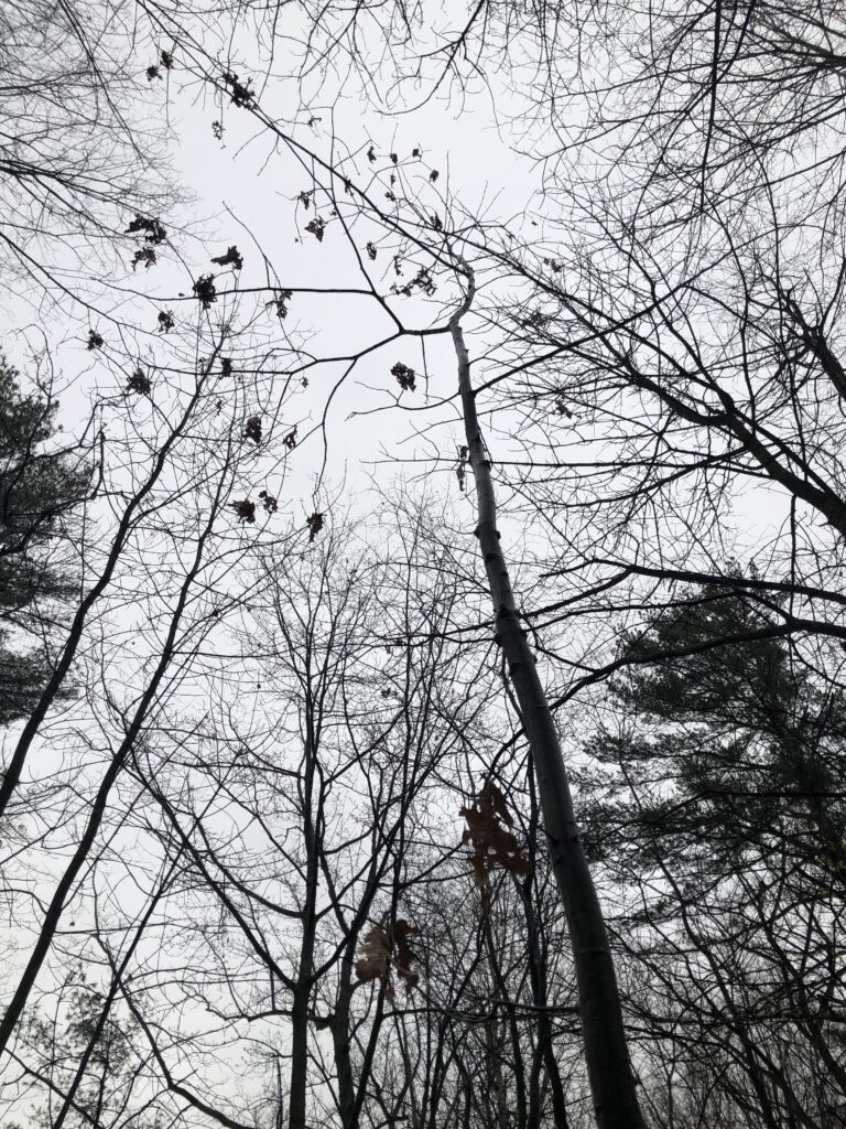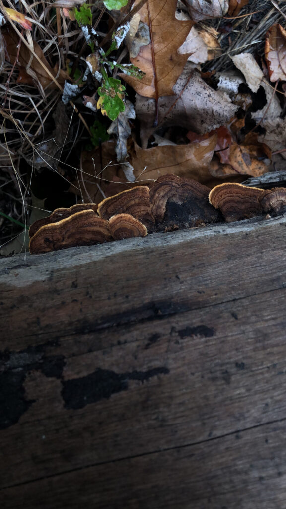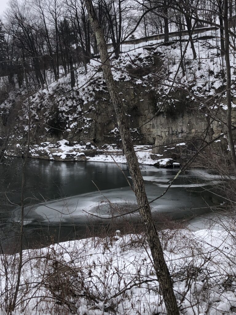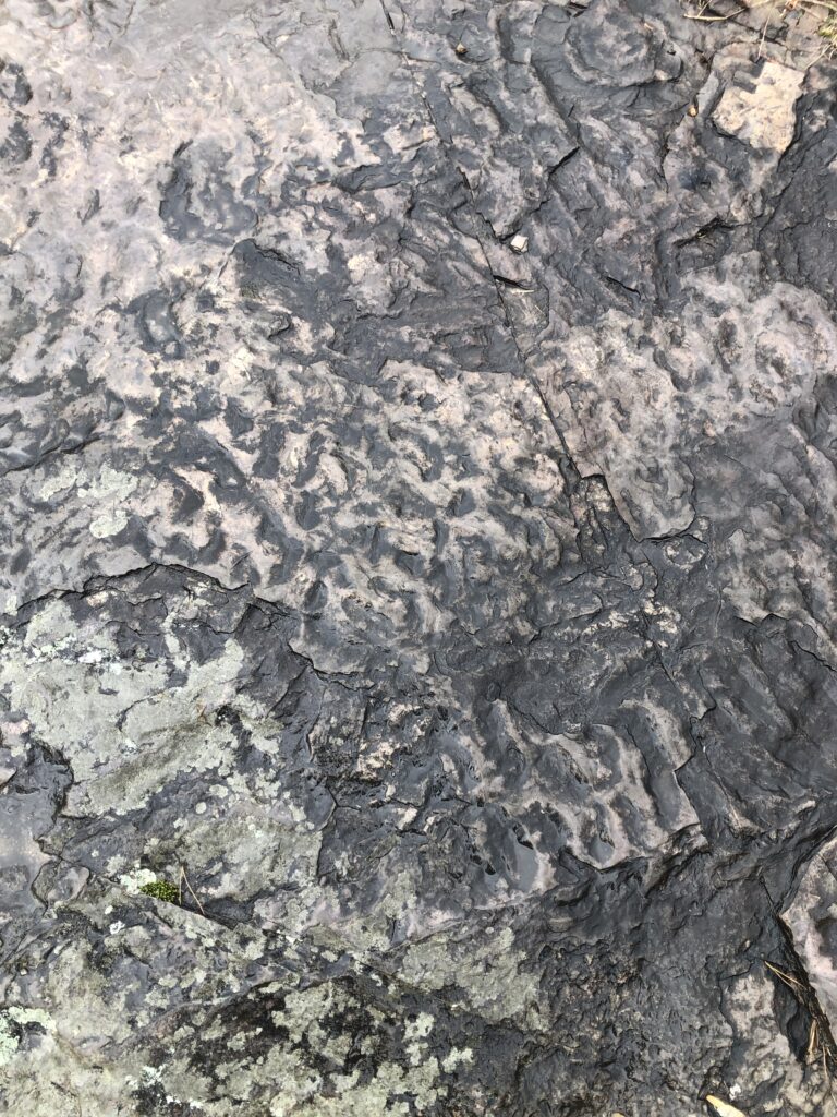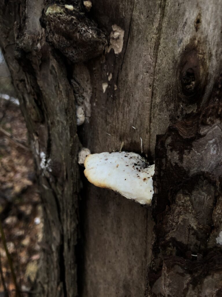 A significant landmark I have become familiar with is the log that rests on the rocks in Salmon Hole. In the fall, when I first visited, mushrooms were growing on it, and plants surrounded it. But as the year has gone on, this growth has stilted. The rocky area in Salmon Hole has a very prominent organization. The waves in the rocks and all the trees grow in the cracks.