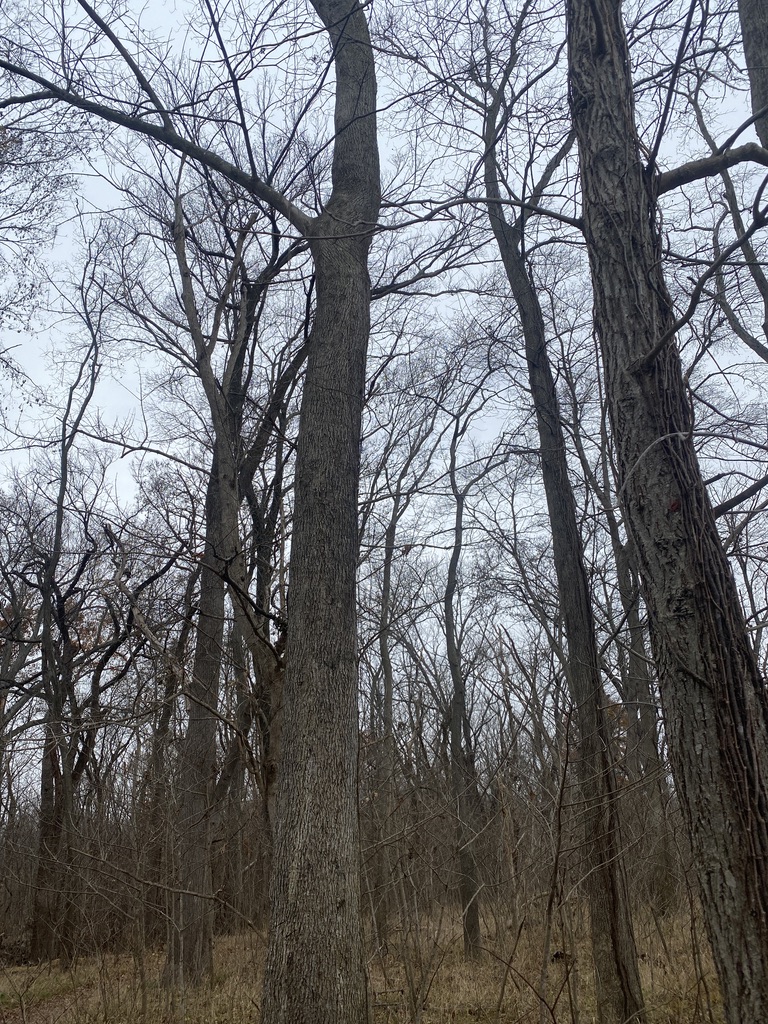 The phenology of the Trinity Woods has changed a bit since past visits. The leaves from the deciduous trees have lost their leaves and fallen onto the path and bordering areas. The leaves and needles on the undergrowth are not colorful anymore, mostly brown. The lack of leaves caused better ability to notice nests in the trees. The coniferous trees that border the woods are the only plants that I noticed that still provide color, besides some ferns on the undergrowth. The small stream has not yet frozen over, so it still flows down the hill. Although it is cold, I still noticed many animals in the trees, including squirrels and birds. Some of the birds may be migrating from further north.