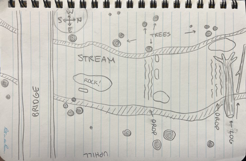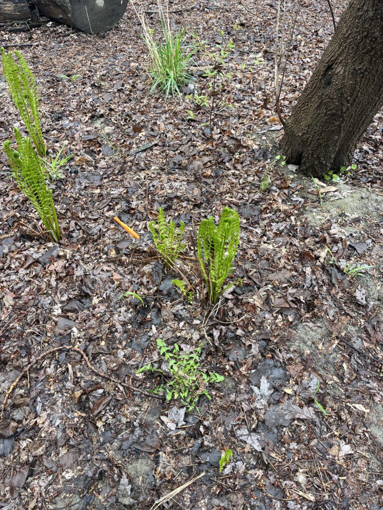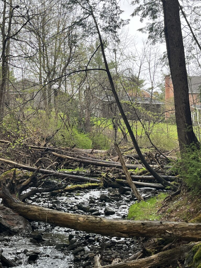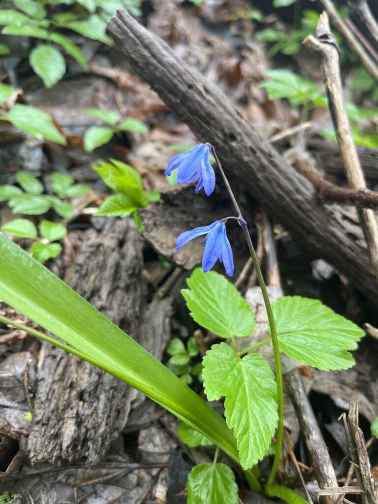 Today, Sunday May 5th, 2025, I visited my phenology spot for the final time this year. Over the course of the past two semesters, my phenology spot along the UVM bike path (and underneath the wooden bridge) has become more than familiar to me, and I truly have enjoyed every single time I have visited it. On this particular visit, I biked over to my spot from WDW around 11:25 a.m., and left around 12:30 p.m. It was raining very lightly throughout the duration of my time spent there, and it was around 52 degrees Fahrenheit outside. I started off by using iNaturalist to identify some of the new plant growth up along the top of the hill, including:
