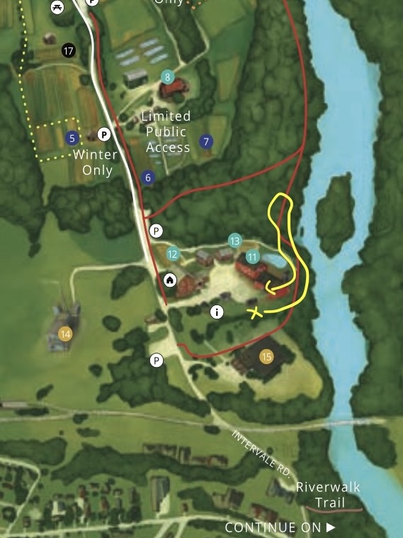 When I first arrived down by the river, I noticed that there were a few birds flitting in and out of a small dead standing tree on the opposite bank, but I was unable to identify them from that distance. At first, I sat down in my Crazy Creek on a rock and watched them fly back and forth from the dead standing tree to branches on the surrounding Eastern White Pines, but eventually my curiosity got the better of me. I journeyed across the river to the other bank (in order to get closer), and although I scared the birds away at first, after sitting still for another 25 minutes they eventually came back. There were about five Black-Capped Chickadees by the time that I left, and they continuously dived into the hollow center of the dead tree and repeatedly emerged clutching piece of wood (and potentially bugs) in their beaks. The time I spent watching those birds this morning was the most peaceful hour I have spent on my own in a while, and being that close to them felt very special.