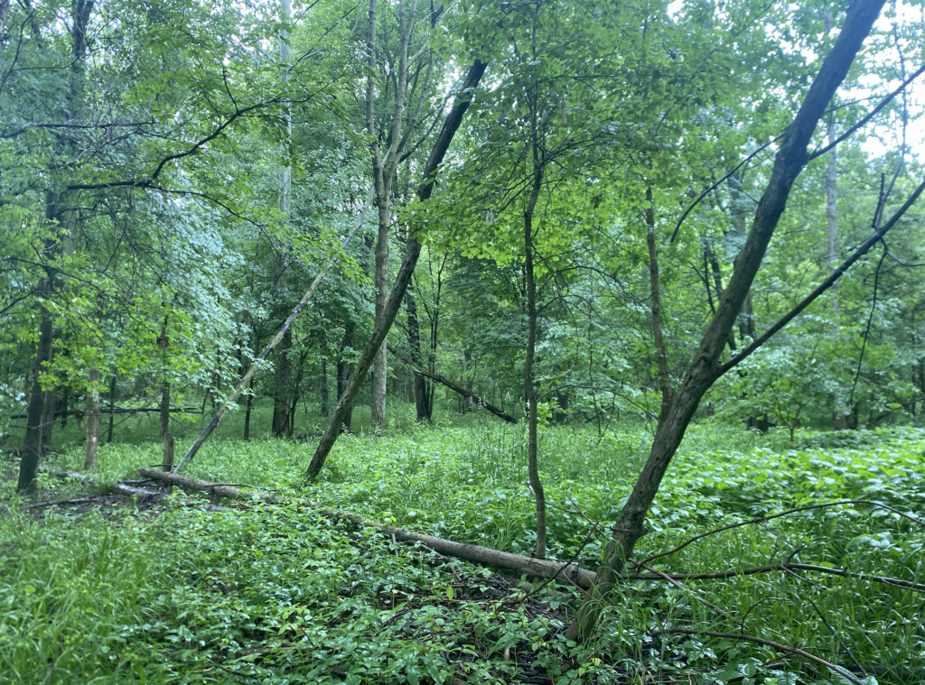 Today was much noisier/active than any of the other times I have visited this site. I heard many different birds chirping/singing: red winged blackbirds, cardinals, blue jays, common grackles, song sparrows, indigo bunting, a great crested flycatcher, robins, and even a red-tailed hawk. I also heard many squirrels and saw two chasing each other and chatting a little aggressively. There were many different bugs I heard flying around me. I even spotted a fish jump out of the river! I have not seen any fish at all swimming around since I have visited: the river is not the cleanest so I did not realize that many fish were in there. On my walk to my site, I also spotted a doe and her fawn, which was the first time seeing them there and was a lovely surprise. Unfortunately they were too far away to get any good shots but I still attempted. I think that because I came earlier in the day that it was much more active; all of my other visits have been a little bit later in the day. Weather may also have contributed, for it was the nicest weather thus far in my visits.