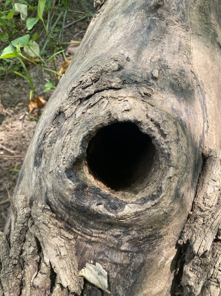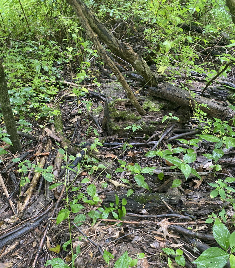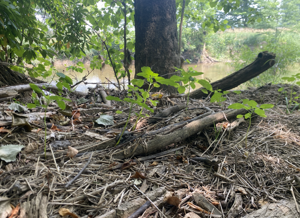 Located along the river here, a small area contains tons of dead logs, twigs, leaves, etc; layer upon layer contains this organic matter. There are also many nuts, remnants of corn, small, sprouting plants, spider webs, and what looks to be animal-made holes (I am assuming many species have began to reside here in all of this matter). The spot looks quite untouched and dry so my best guess is that it has been here for quite some time, without any large disturbances having been in the area recently. I spotted many smaller bugs: beetles, flies, dragonflies, ants, and spiders. I sat there long enough for them to start crawling over me. I peered into a large hole in a log on the ground and saw a daddy long leg spider and ants making their way in. It was quite interesting to observe this small area of habitat but I wished that I could see what all was actually beneath the organic matter.