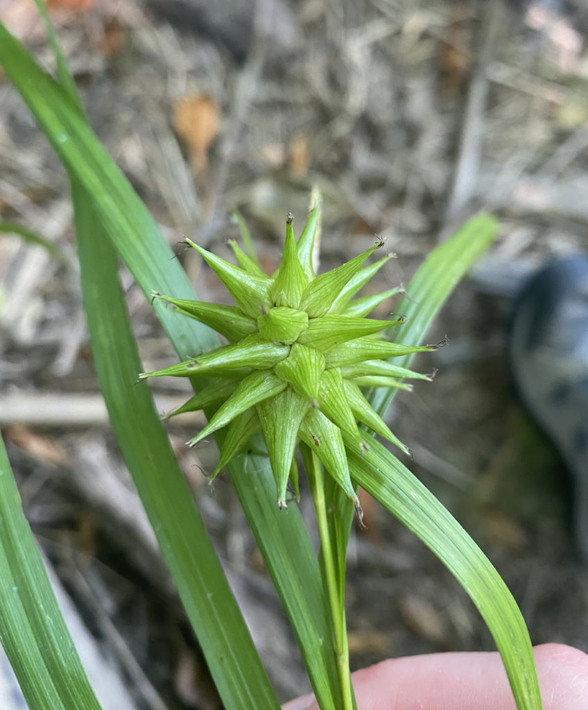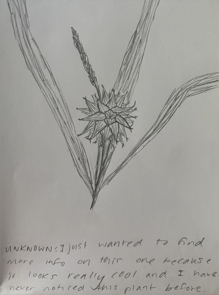 Unknown species: Carex grayi, also known as Gray Sedge; I uploaded the photo above into Plant.id and got the species’ name.