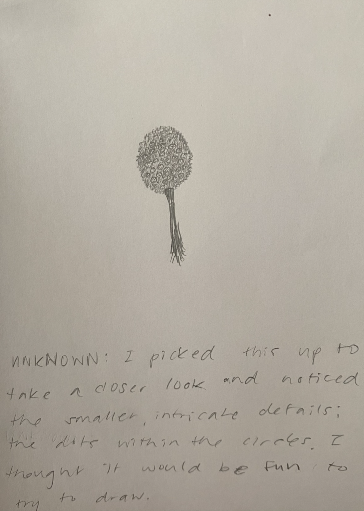 As I was taking photos, it made me actually look more at different plants and species to see what interesting details I could find. Rather than focus on small, drawable items like last blog, I instead focused more on things to photograph that I could not pick up or take with me. It gave me an even deeper appreciation for all of the processes involved with making the site the way it is today. Overall, today’s site visit was the most intriguing, for the many bird sounds and animals I saw (for once more than mainly bugs) and the thriving plants made it very enjoyable in the sunny weather.
