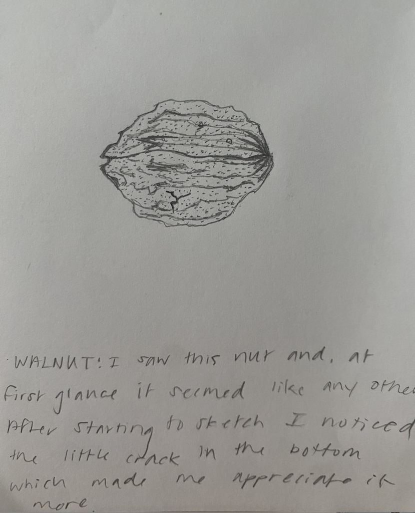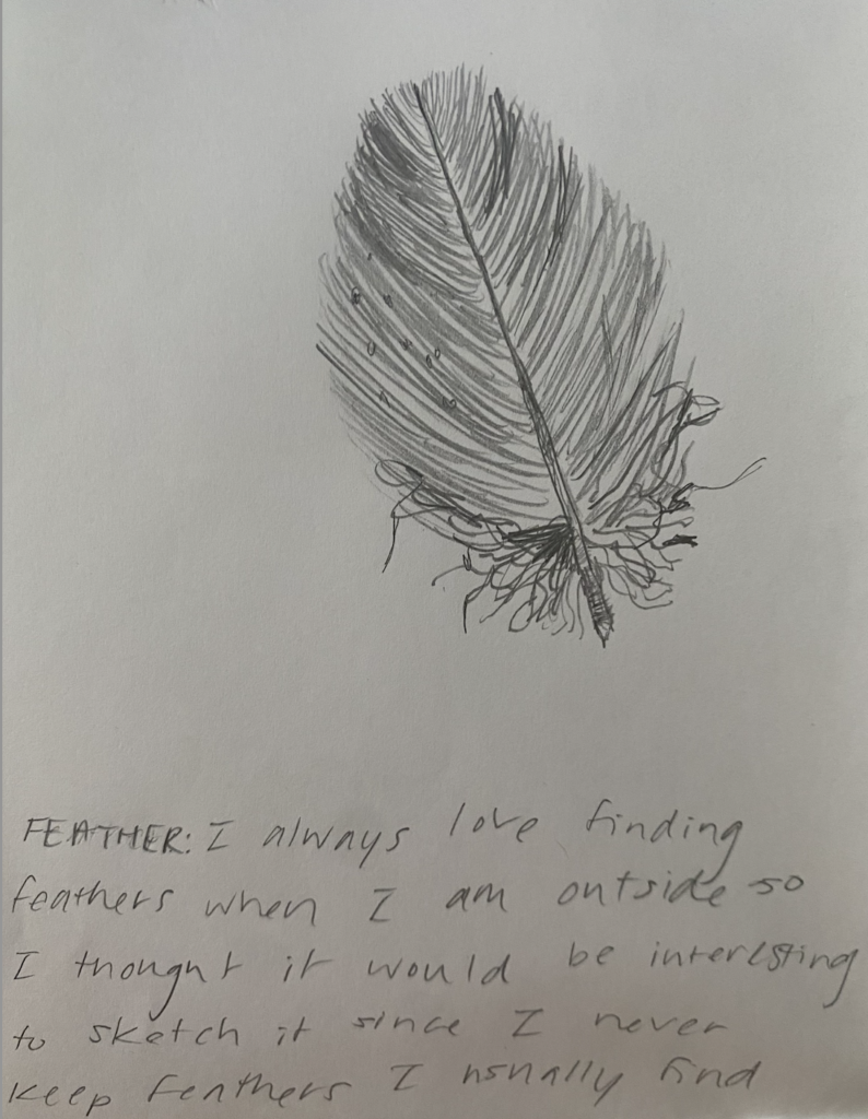 Overall, I found sketching relaxing and extremely helpful. Any object at first glance may not look like much, but once you really take a closer look, which I had to in order to sketch, there are many smaller details that can be noticed. Sketching helped open my eyes a little more to see all the parts and I find that fascinating. However, it was a little bit challenging at times sketching because of all the little details that could not be seen from farther away (from a normal perspective).