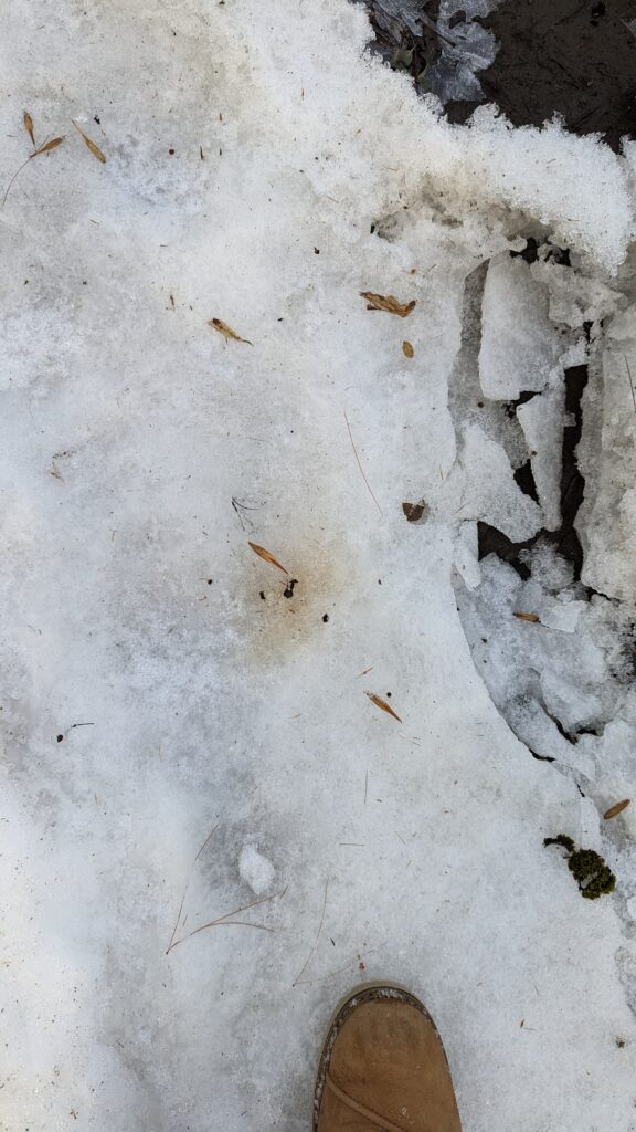For this phenology/inaturalist event. I went to Centennial twice over the event. Unfortunately, a lot of the snow had melted at this point, leading to not many tracks.