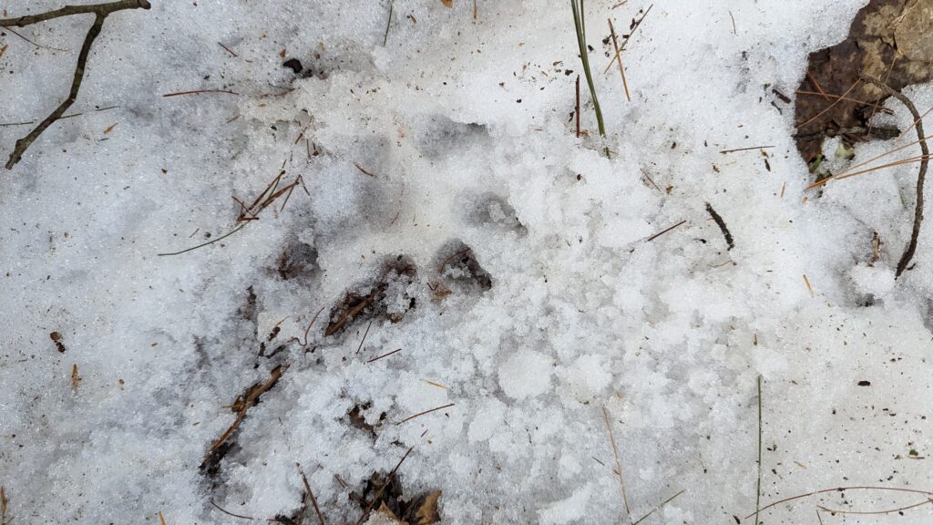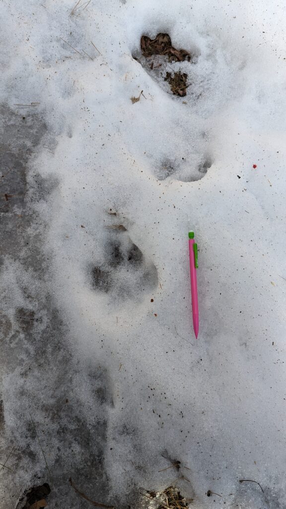 So uh yeah, that was nature 1, me 0 type moment. That being said. We actually had some stuff today. First off, we heard more birds. So that’s great. We sat there for an hour and only heard birds like 5 times. Therefore, that’s a win. At the end, we actually saw some tracks of deer and some canine. For the canine, we weren’t sure if it was wolf, fox, or just a big dog. The deer tracks were followed by the canine, though, so it leads me to believe it was a wolf. Plus, the tracks were massive.