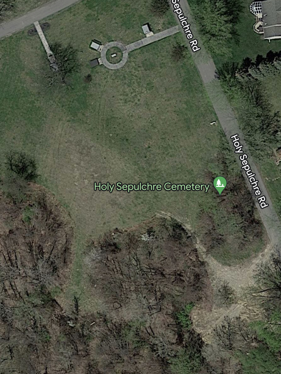 A Google Maps view of the area we walked to in Holy Sepulchre Cemetery.