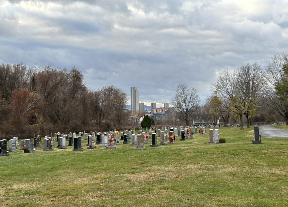 The view of Albany from the clearing in Holy Sepulchre Cemetery.