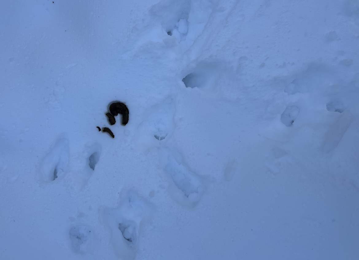 I did attempt to identify which animal the scat could be from, but it didn’t really match any of the drawings in the manual we have. I think it might be just dog poop unfortunately… However, the tracks were interesting because they weren’t dog paws, but rather hooves, so I think they’re from a deer because they’re definitely not large enough for a moose.