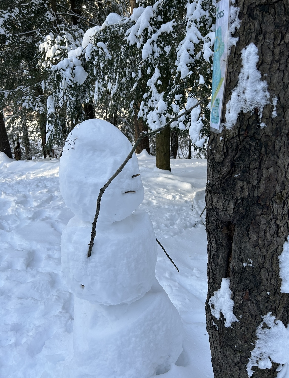 A snowman trying to find his way around Centennial Woods.