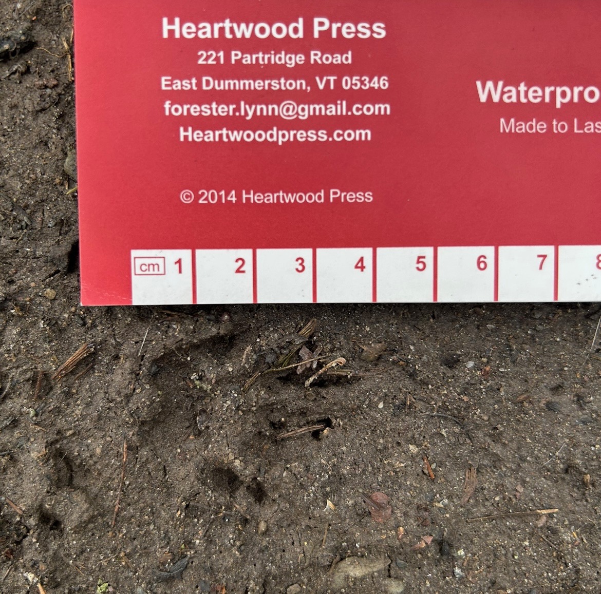 The 4cm front paw track of an Eastern gray squirrel.