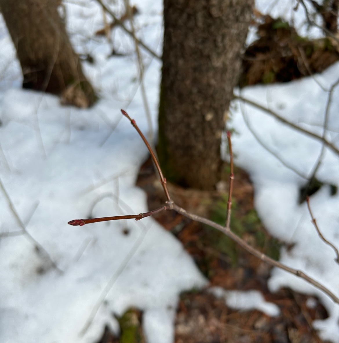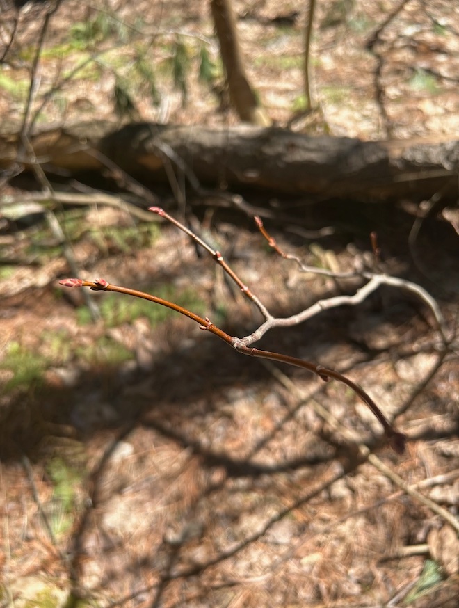 I think the tree has gotten a little taller, but it could just be the fact that there is not snow covering half of it, so it just seems taller. However, the buds do look different from the last time I visited, so it’s definitely grown. Again, the red maple had no evidence of flowering, so I noted this on iNaturalist.