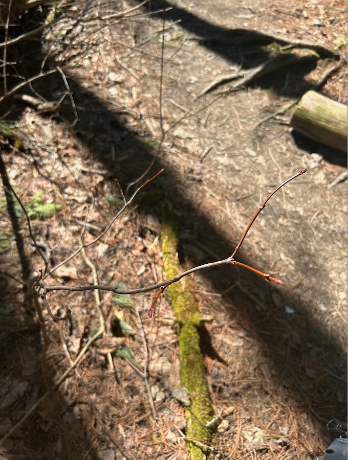 This week I took my usual walk through Centennial Woods, but this time keeping a careful eye out for any trees with twigs I could access. On the way to my spot, I was happy to find what looked like a baby red maple.