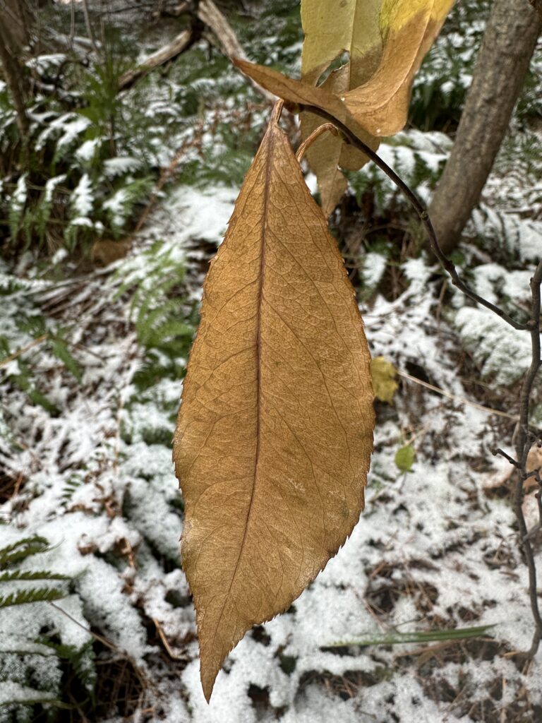 Unfortunately, I didn’t hear as many birds during this visit. Migrations are done by now, and many birds probably focus on using energy to stay warm instead of singing. As I entered Centennial Woods, I did hear two birds cheeping back and forth at each other, little signals of “I’m here,” and it made me smile. At my spot, I used Merlin Bird ID to identify pine siskin and black-capped chickadee, and I also heard a lot of Canada geese and some crows. There seemed to be a few other species active as well, but they weren’t loud enough for the app to pick them up, and I wasn’t able to identify them myself.
