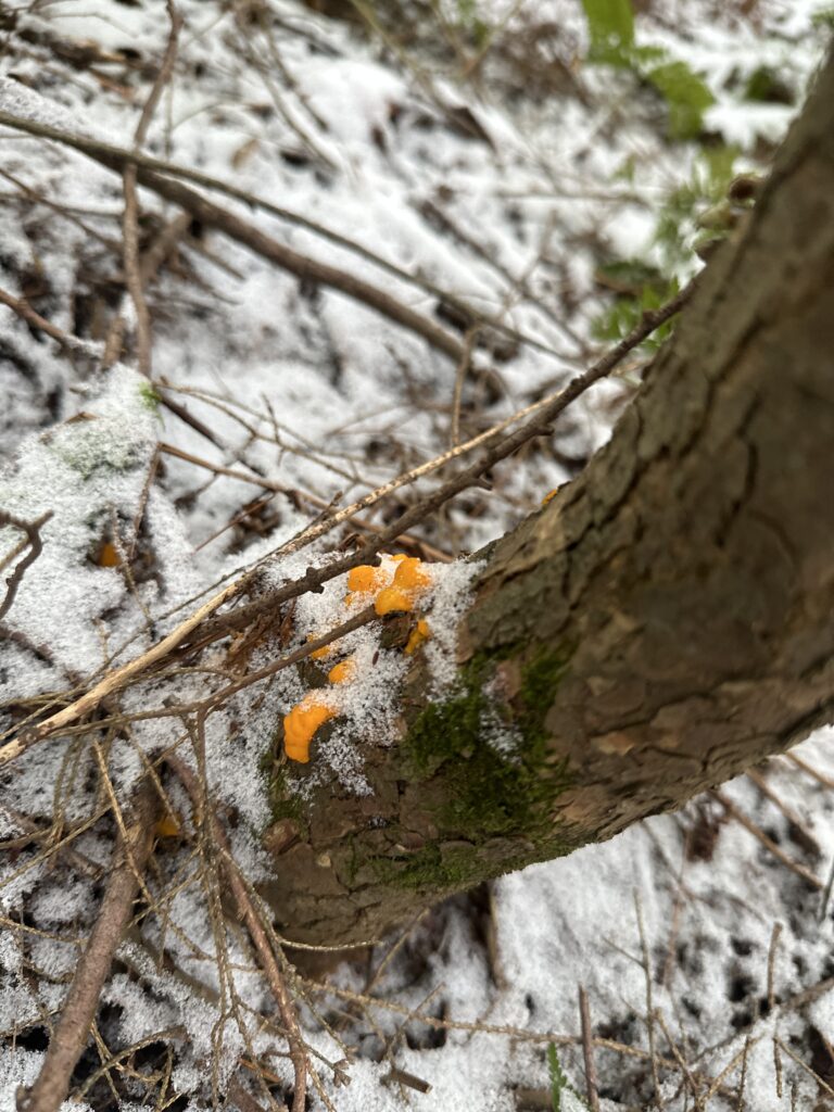 Because of all of the deciduous trees, the snow cover was a little lighter than other areas of Centennial Woods. We learned in class recently that deer like to sleep near deciduous trees in the winter because they provide shelter from the deepest snow and hold in some of the day’s heat at night. I wonder if I’ll see signs of them bedding down when I come back in January. The snow isn’t thick enough for that yet, but it was thick enough to see some tracks!