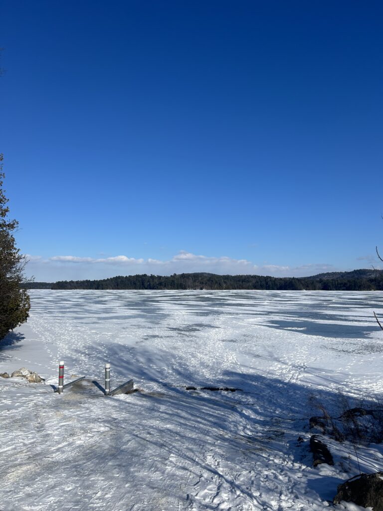Looking back at the pictures I took during my last visit to Shleburne Pond on 12/5, it is clear that some more phenological changes have taken way. The largest change was surely the fact that the entirety of the pond is now frozen and covered with a thick ice layer. In early December, the pond was still majority unfrozen, with only some ice forming along the edges. Although there is less snow cover than in December, my friend and I were able to pick up on a lot more animal tracks during this visit, specifically by the brush pile and pond’s edge. As for vegetation, there seems to be no obvious change since our last visit. The Northern White Cedars and Eastern White Pines have all maintained their foliage, while the rest of the vegetation is completely barren. A lot of the vegetation previously at the pond’s edge has now been pushed beneath the ice layer or is barely poking out of the snow layer.