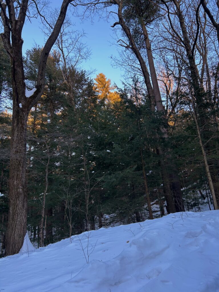 We weren’t able to spot any wildlife during our short hike, although we did hear a few bird calls around dusk. Overall, I really enjoyed observing more phenological winter changes in a new spot, especially one so close to campus and Burlington. Additionally, logging the observations on iNaturalist has been a great way to compare tracks and wildlife signs from other Rubenstein students exploring the area, including at Centennial Woods. It has been an amazing opportunity to research and observe such unique ecosystems that are located directly in a populated city and understand how urban environments play a role in their function. As the snow melts and wildlife becomes more active with the arrival of spring, I hope to return back to Centennial Woods to observe some more phenological changes and activity.