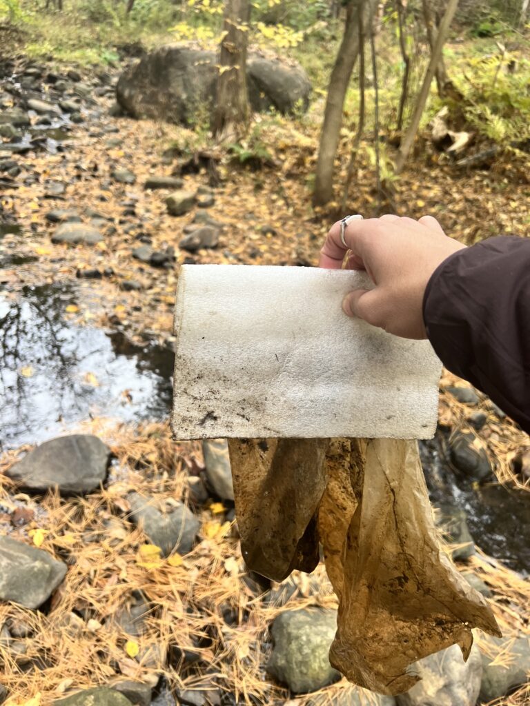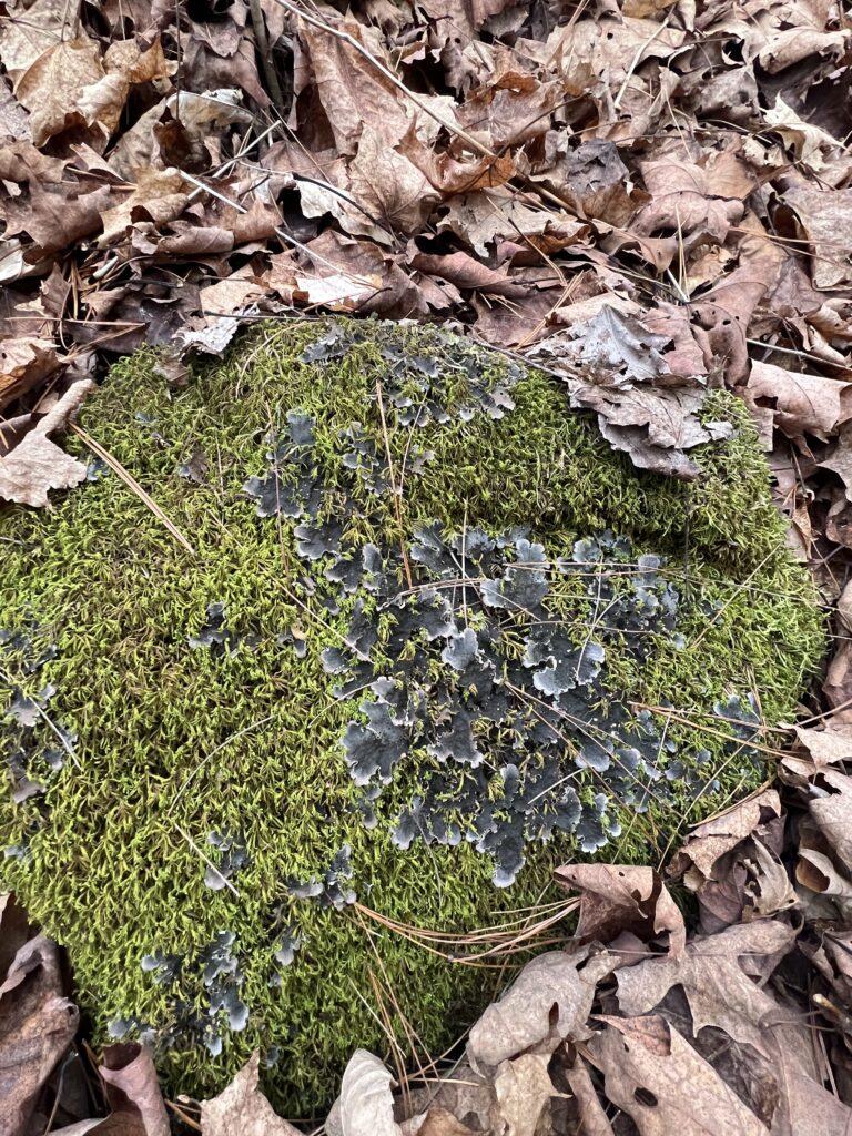 The foliage at secret rock has changed quite a bit since the start of this project. All of the leaves on the surrounding deciduous trees like the maples and beech’s have now fallen to the ground creating a carpeting on the forest floor. The stream is still flowing, but it is less strong since the large amount of leaf blockages throughout it. With less time looking up at the trees I was able to observe some very interesting moss on the forest floor with an image of what appears to be Pelt Lichens on the left and pixie cup lichens on the left. These mosses are signs of decomposers entering the ecosystem during this time where all of the leaves are starting to decompose into the soil. With this being my final post I would like to talk about my favorite aspect to this phenology project. Without a doubt, the best part of this project was being able to go into a nearby, ecologically diverse area that held species that embody the natural ecology of this new place that I live. When I first came here I was unfamiliar with the area, but coming back to this place every so often made it nice to have a place in my new home that I knew so well .