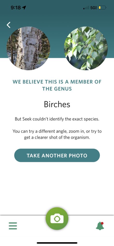 Here is a paper birch that I found in Centennial woods right behind my phenology location. I have actually admired this beautiful birch since the moment I picked the secret rock as my spot. It had stood tall through the months and I am completely enraptured by its elegance. The reason I know this is a paper birch and not any other kind of birch is because of the unique color of the white curling bark. iNaturalist saw that this was a birch but apparently could not identify the specific kind.