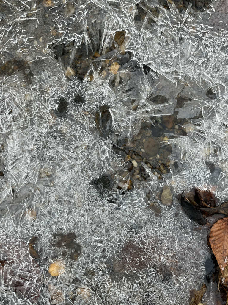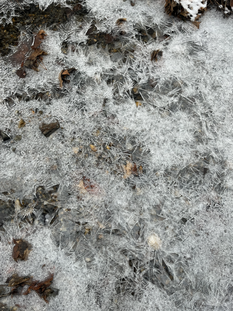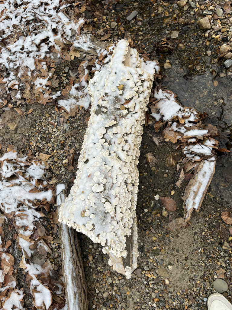 There is also lots of cool ice! And the mushroom log from October’s update is now frozen.