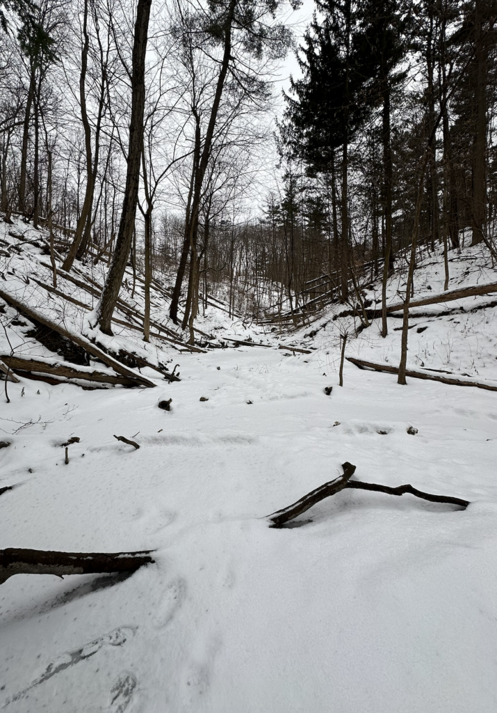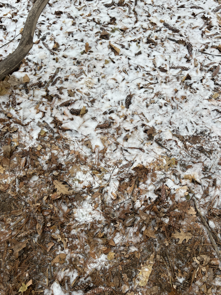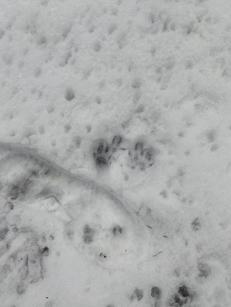The stream is still flowing, just under the snow and ice; I am going to make sure to take a picture for the next update. I hope to see some more tracks (maybe some skunk🤞), scenery changes, and wintery developments for next time!
