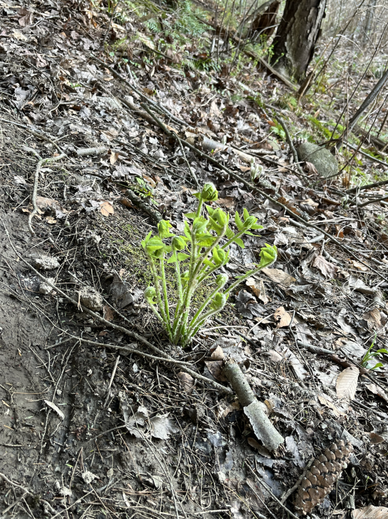 Here are some swelling buds! This was the extent of the spring changes, and I didn’t find any new plant growth or sprouts. Many buds have started to turn purple and red, with some tiny green undertones in between the halves of the bud. Bare trees are looking slightly more alive with their newly swelled buds, and I found many broken off buds which indicates some newer activity by birds who were likely feeding.
