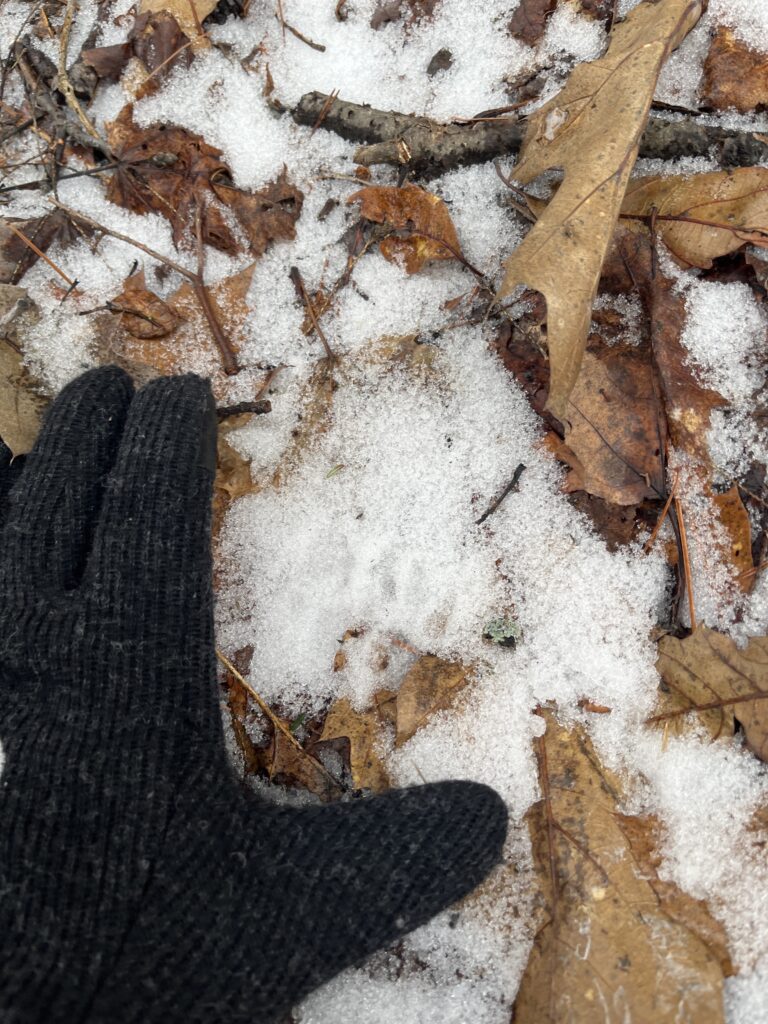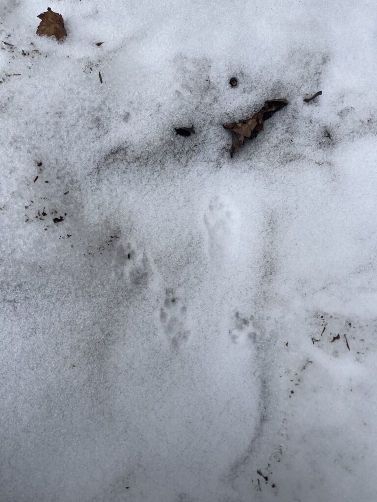 It was fun to follow the tracks through the woods, they never went in a straight path and went all over the place. It felt like they told a story about what the animal was doing. It was a fun way to be connected to the forest and the animals that live within it.