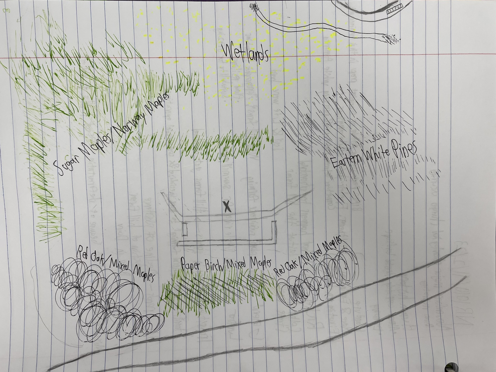 Welcome to my site! To access this spot, enter Centennial Woods at the trailhead and continue straight until you reach the intersection point of the main trails. From there, continue towards the steep uphill portion but do not go all the way up. On your right, there will be a small side-trail leading to a dilapidated cement structure covered in graffiti; you have arrived! At this site there are mostly Norway Maples and White Birches. Interspersed are an even mix of Red Maples, Eastern White Pines, and Hemlocks. The forest floor is heavy in ferns, wild raspberry vines, and native grasses.