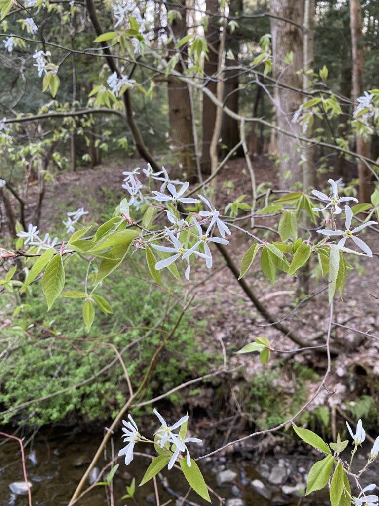 Centennial woods is starting to look more and more similar to when I was first introduced to the forest. Even though this has not been my spot for very long, I still interacted with this forest many times throughout the year. Centennial was actually one of the first natural areas I explored in Vermont. In early September I saw the lush dense foliage and worked to identify trees within the woods. In November I spent time identifying exotic species like Norway Maple, Oriental Bittersweet, Buckthorn, and Japanese Barberry. At the very beginning of April I explored the new growth within the forest like the budding Red Maples along the wetland near the creek. I also observed increased wildlife activity like Woodpeckers. In my most recent visit I observed the culmination of the phenological cycle seeing many flowering species including Serviceberries, Field Horsetail, as well as the aforementioned Red Maple. I also noticed some fry moving around in a calmer area of the creek, which is the first sign of aquatic life I have observed at Centennial Woods.