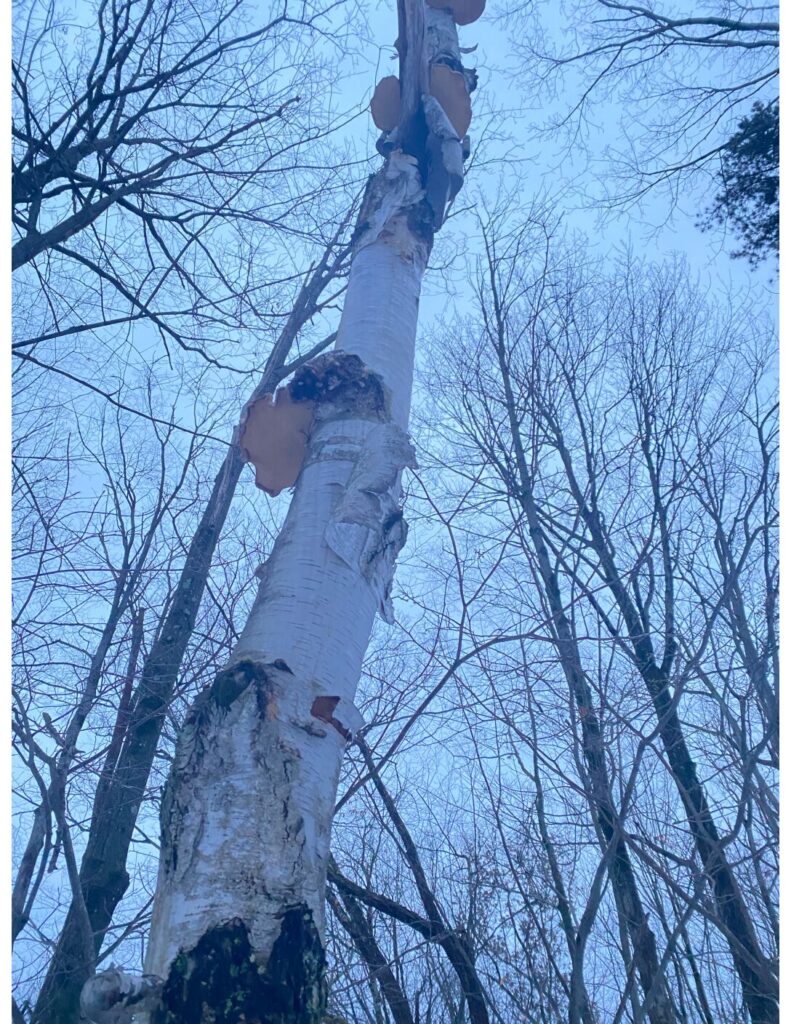 Sunny Hollow Natural Area has changed a lot since October from the fallen leaves to the icy conditions. Winding through the hiking trails was difficult to say the least in the snowy conditions. The only leaves that have managed to hold on this long are on young American Beech trees which surprisingly have a few very brown leaves. Other than that the only green in the canopy comes from the Eastern White Pines which are plentiful and vary in maturity. Another plentiful species was fungus. I found mushrooms of varying types on fallen sticks and even a particularly magnificent Paper Birch. Some were more squishy and others very hardened and their coloring varied from orange to a dark brown. Since seeing moss on trees is such a rarity in the Northeast I appreciate every little fungus that I notice on trees