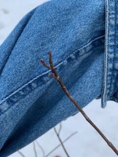 My reason for visiting my phenology spot this week was to locate either a red maple, Northern red oak, paper birch, or American beech. However, to my surprise (although I should not have been surprised considering I had already identified all the trees at my phenology spot in the fall), none of these trees were there! Now, I could have wandered the Intervale, looking desperately for one of these trees, but instead I decided to choose a silver maple because, although it is not a red maple, it is still a maple, and I really wanted to choose a tree at my phenology spot. From there, it was pretty easy to choose which tree I would be studying over the next few months, as there are very few that have easily accessible branches.
