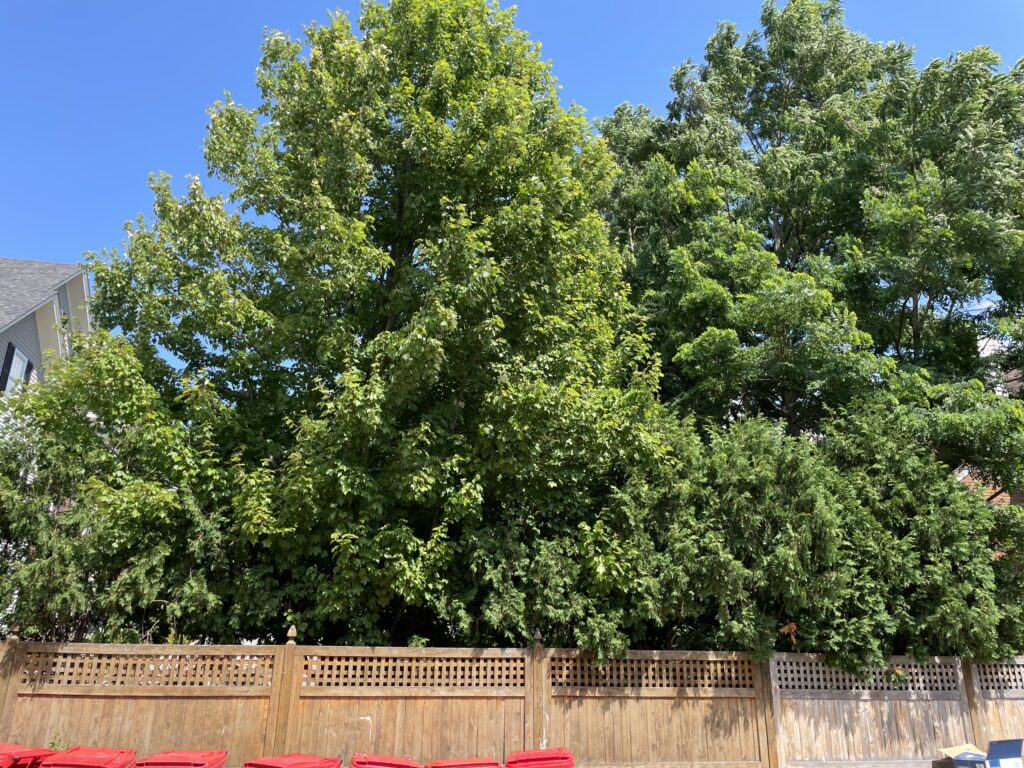 One of the main things in the yard is a massive red-osier dogwood. This bush is full of life, from small bugs and insects to birds rummaging around to the occasional skunk looking for a hiding spot.