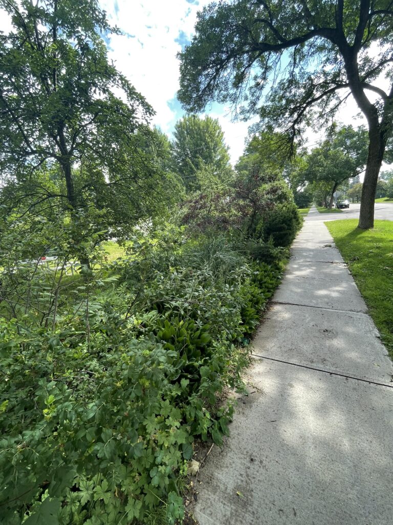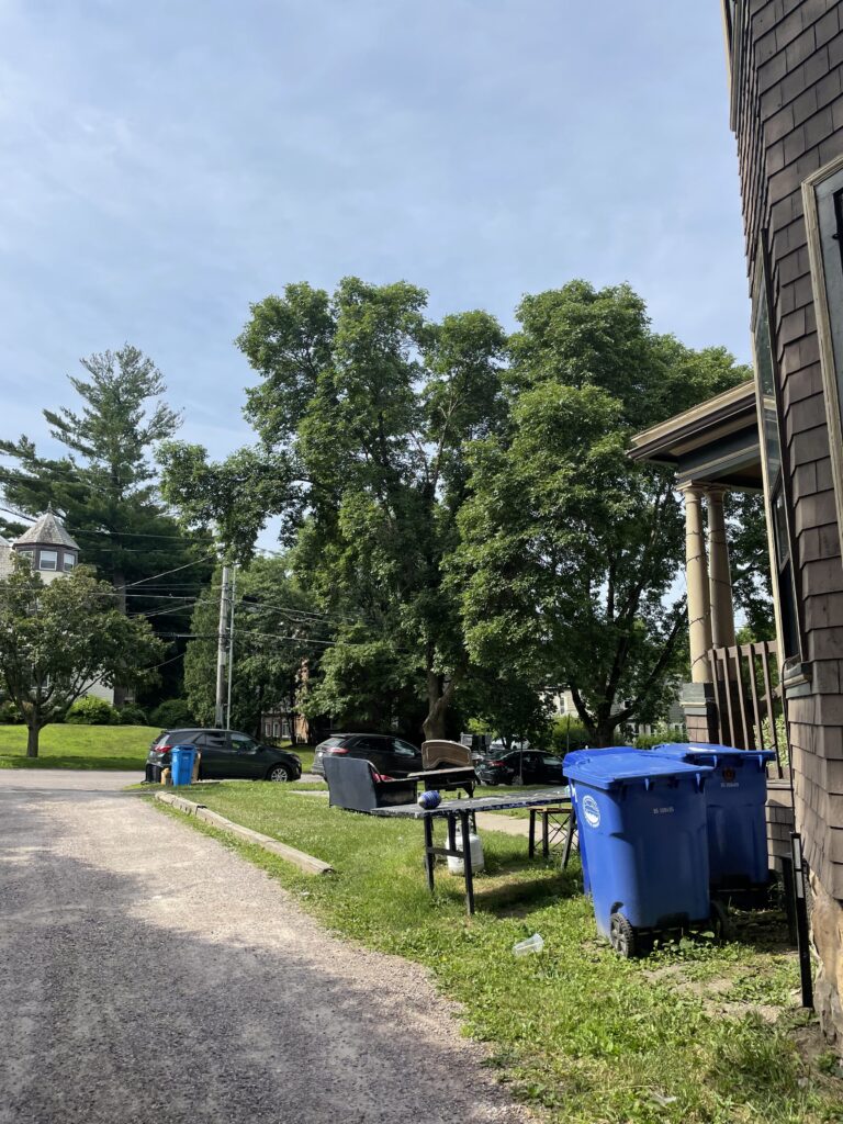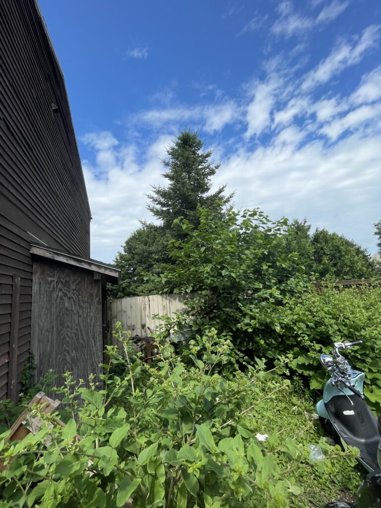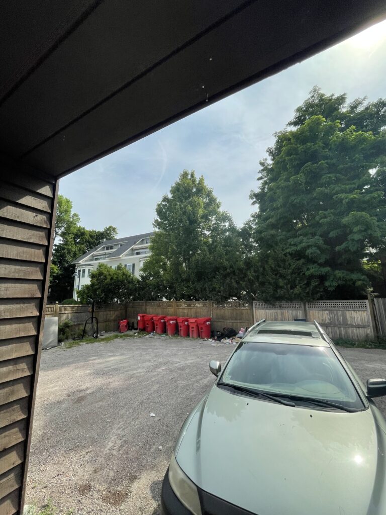 exiting the front door of my apartment into the shared parking complex. Although there is trash from all the other units back here and its fairly gross, there are still plants growing everywhere as well as animals visiting (for better or worse), such as birds chipmunks, raccoons, and skunks.