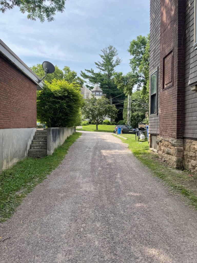 Walking down the driveway it leads you towards college street and a shared front yard.