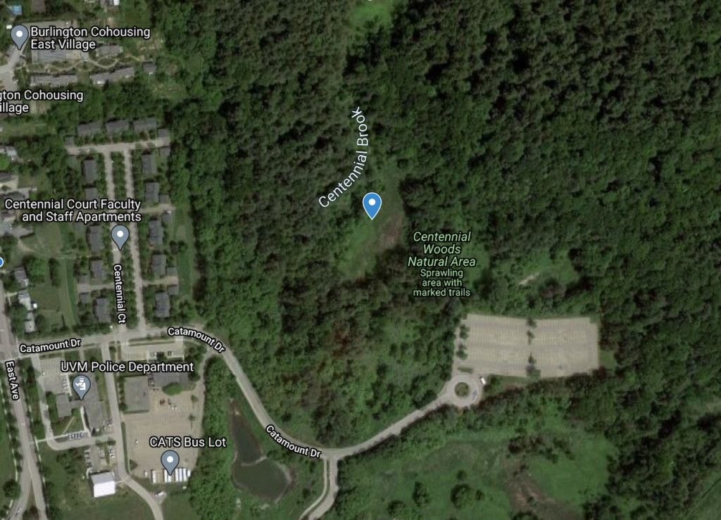As you pass the UVM Police Department, take a left down a marked path located “Centennial Woods” – as you march along this natural path, observe the energies that flow between trees, taking note of the change that is present in this area.