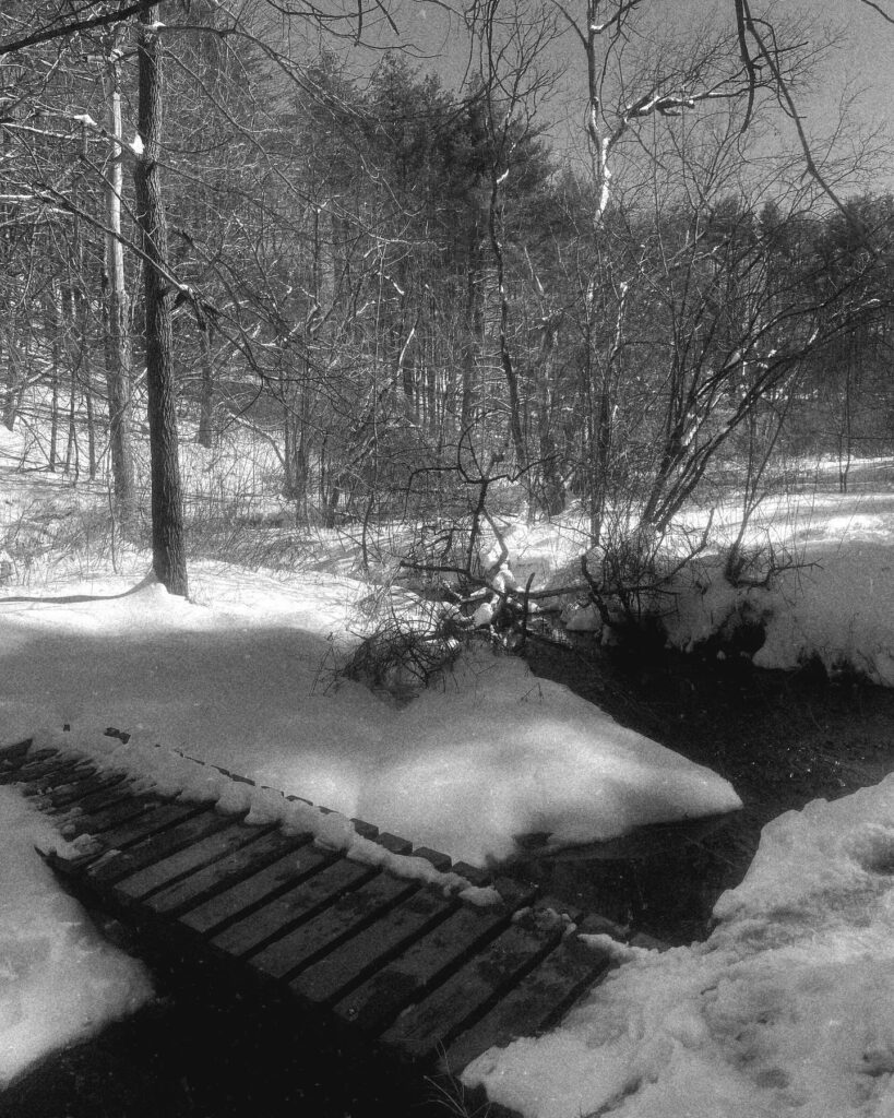 In January (2024), I welcomed a new year by plunging in the cold ocean in Cape Cod. After a month spent at home, I was antsy to get back to my place. There was something about the peace that I experienced when I was at Centennial that kept me going back, even if a blog wasn’t due. This time, pearlescent snow covered the forest floor, the birds were a lot quieter, and some squirrel tracks were found imprinted on the snow bed.