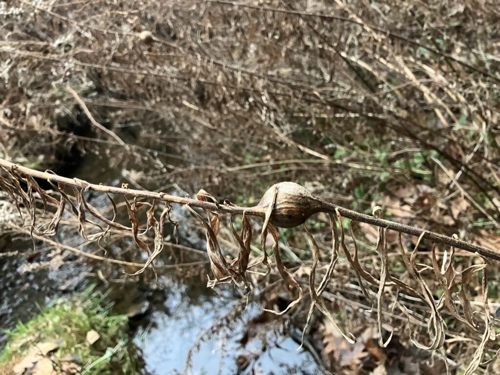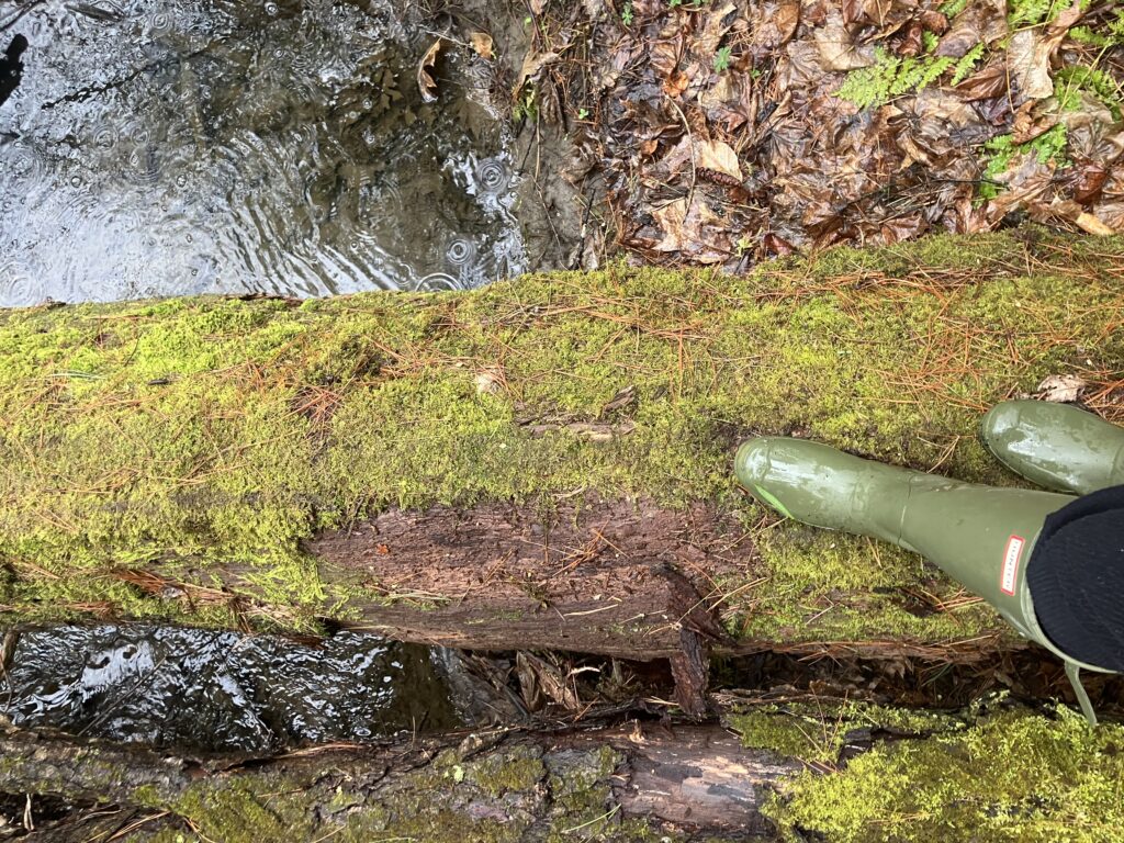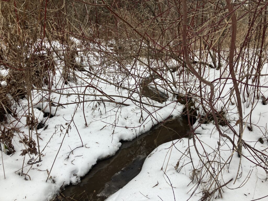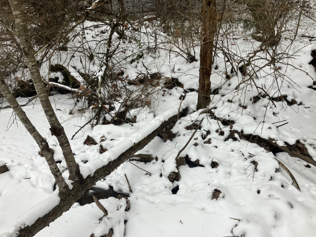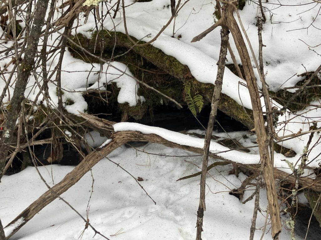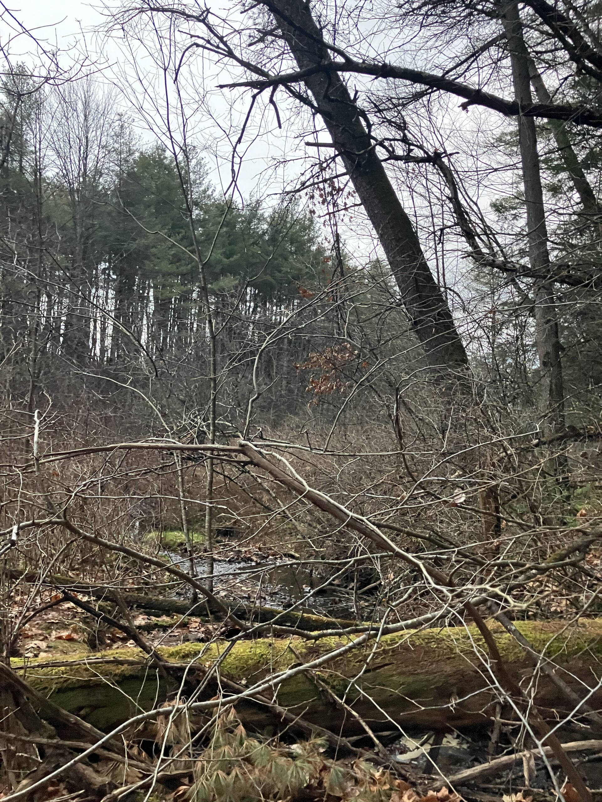 I’ve definitely become much more familiar with my spot and the surrounding area as well as better at navigating it. Initially, it was tricky to find my exact site since it is a little ways off of the path. Now I know what to look for and how to get there without having to follow the stream directly. I’ve come use the patch of hemlocks to the right of the trail as a sign to leave the trail and look for the brook. The large fallen log and small patch of land in the middle of the stream are the main landmarks that help me identify my spot no matter the season. I’ve also come to learn where the water tends to be deeper in my small section of stream and where are secure places to step.
