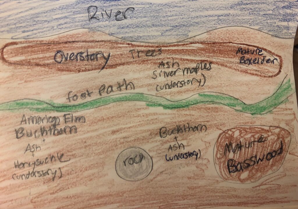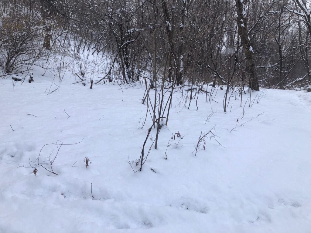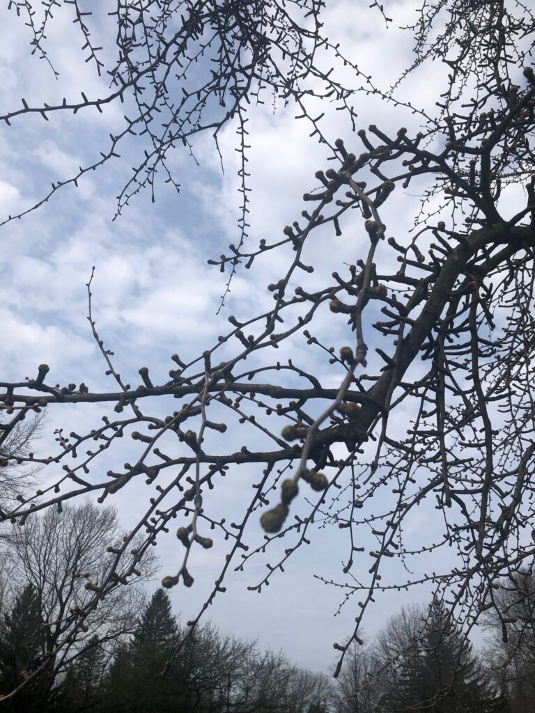 My site has changed a lot since I first visited in September– the fallen leaves from fall have decomposed and there are tons of small green plants popping up, signifying the start of spring. The trees that had their leaves in September have lost them and are starting to grow new ones from the buds. The understory plants like honeysuckle and buckthorn no longer have their leaves, but their buds will start breaking soon.
