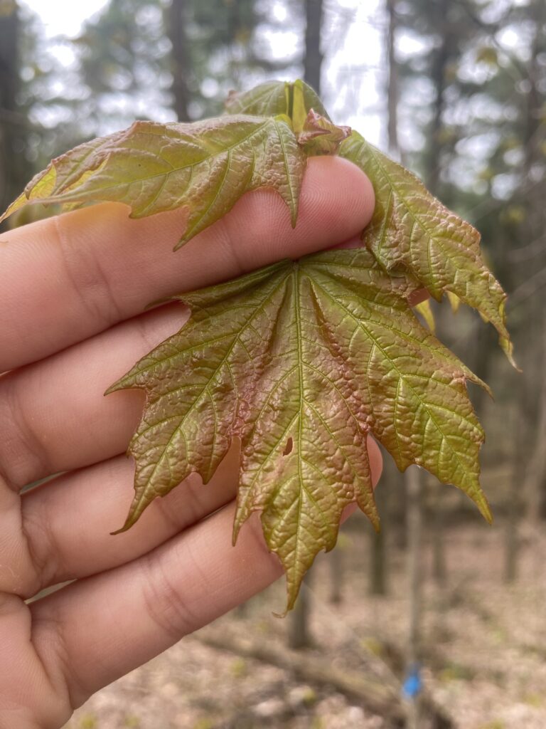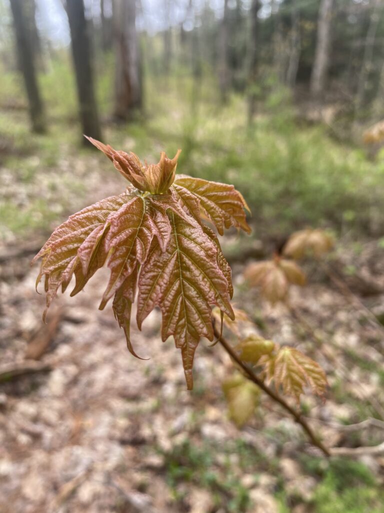 The time has come! Today was my last (official, blogged) visit to my phenology site, and while I say last, it will definitely not be the last time I visit. Over the course of this year I have visited this site about six times officially with a purpose of recording a blog post for NR 1010/20. My first visit was in October, 2023, when leaves were first beginning to turn, and I visited through the leaves falling, snow piling up, and now spring as buds are forming. This experience has been a quietly impactful one, as I look back and think about the deep observations I’ve made without even noticing it. The practice of finding a space in nature is one that I think everyone should do. If this assignment has taught me anything, it’s to find a spot wherever you live that can be yours to connect with and adventure to consistently. It will teach you to observe, and to take a step back from the inherently hectic nature of life.